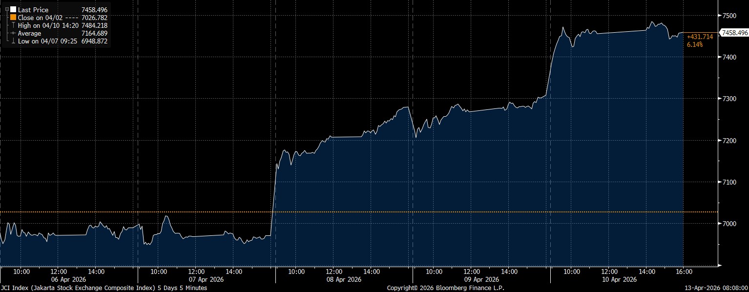 Bloomberg Technoz, Jakarta - Indeks Harga Saham Gabungan (IHSG) ditutup di zona hijau pada perdagangan sebelumnya hingga Jumat (10/4/2026). IHSG menguat 6,14% di posisi 7.458,49. Lantas bagaimana dengan rekomendasi saham hari ini?