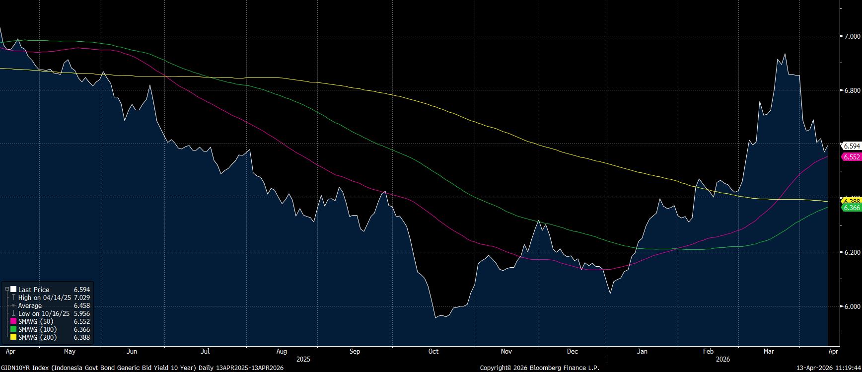 Pada perdagangan Senin (13/4/2026), terlihat dari kenaikan imbal hasil di hampir semua tenor, termasuk tenor acuan 10 tahun.