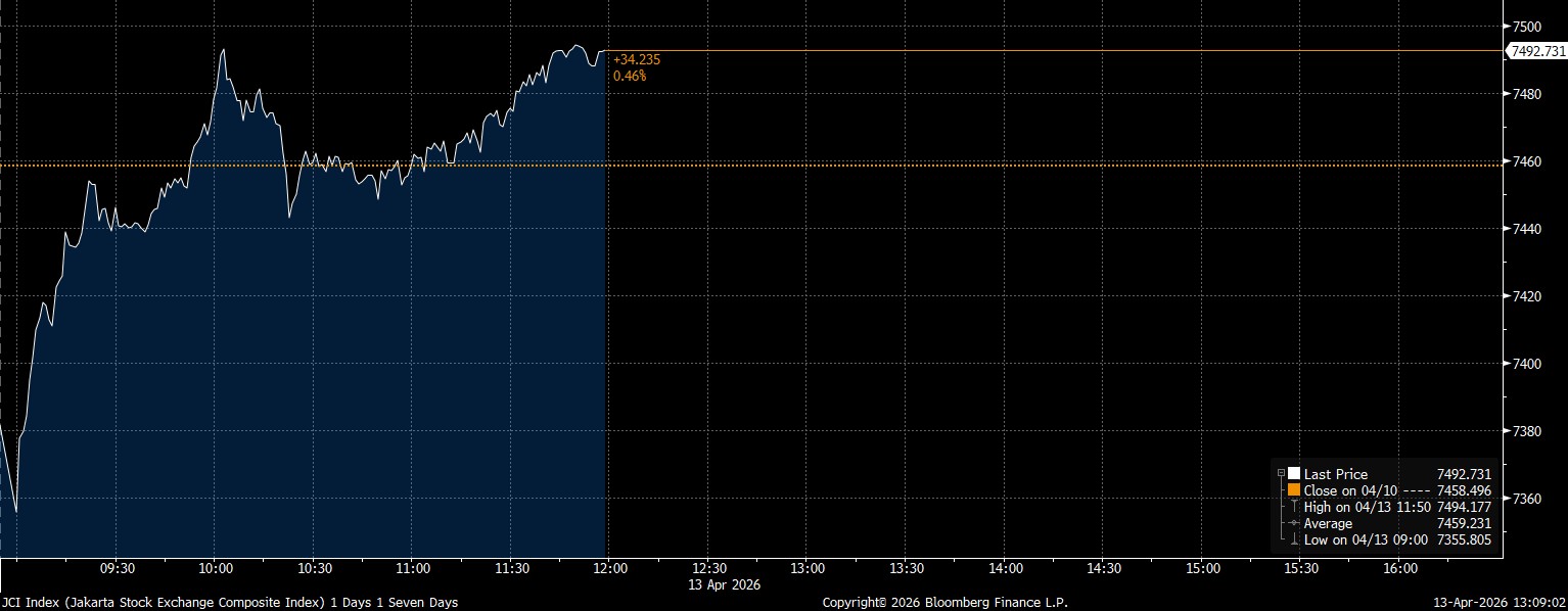 IHSG Penutupan Sesi I pada Senin 13 April 2026 (Bloomberg)