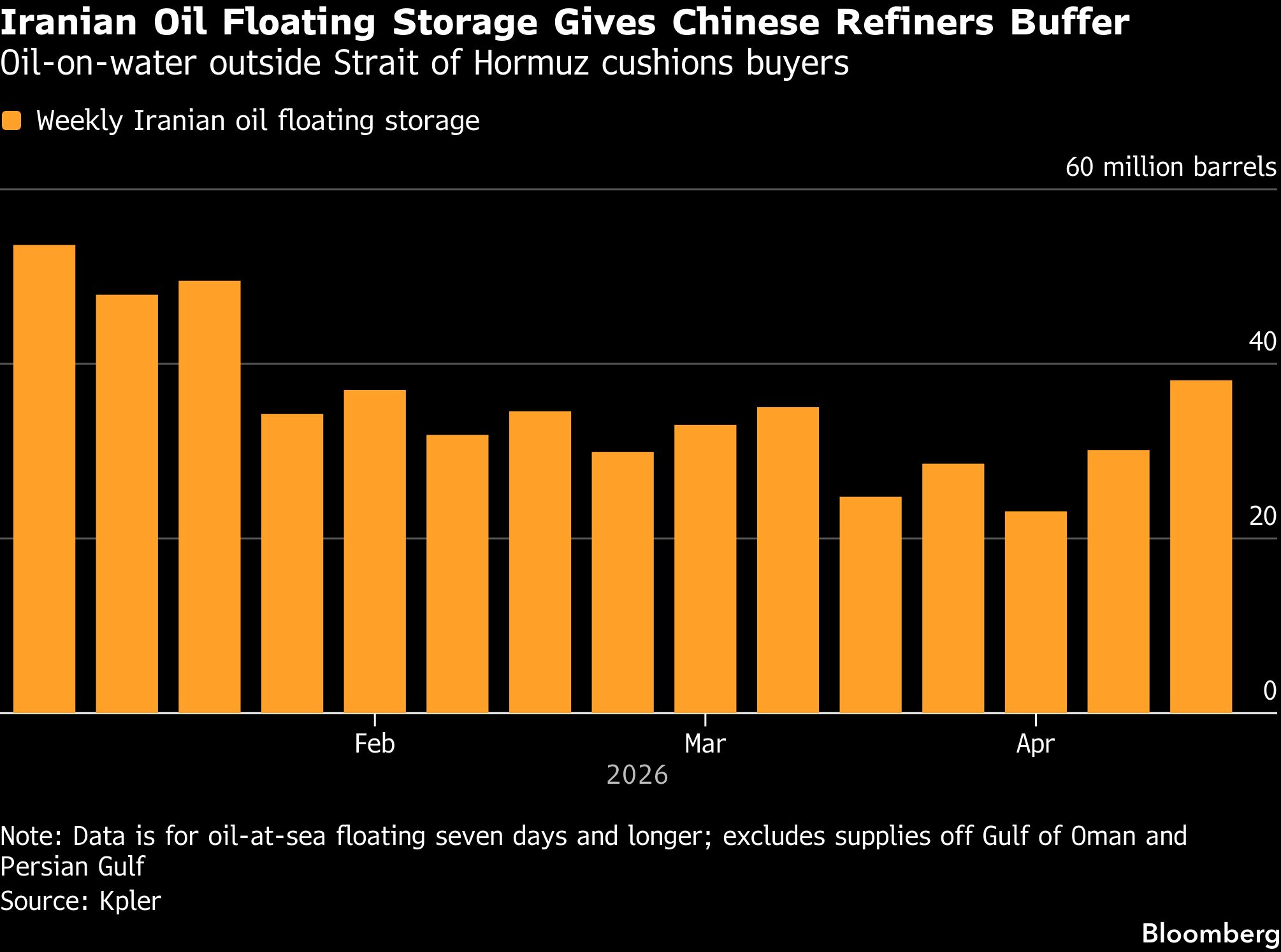 Minyak mentah Iran yang disimpan di laut menyediakan pasokan sekitar dua setengah bulan bagi perusahaan-perusahaan minyak kecil (teapots), kata Emma Li, analis pasar utama China yang berbasis di Singapura di Vortexa Ltd.
