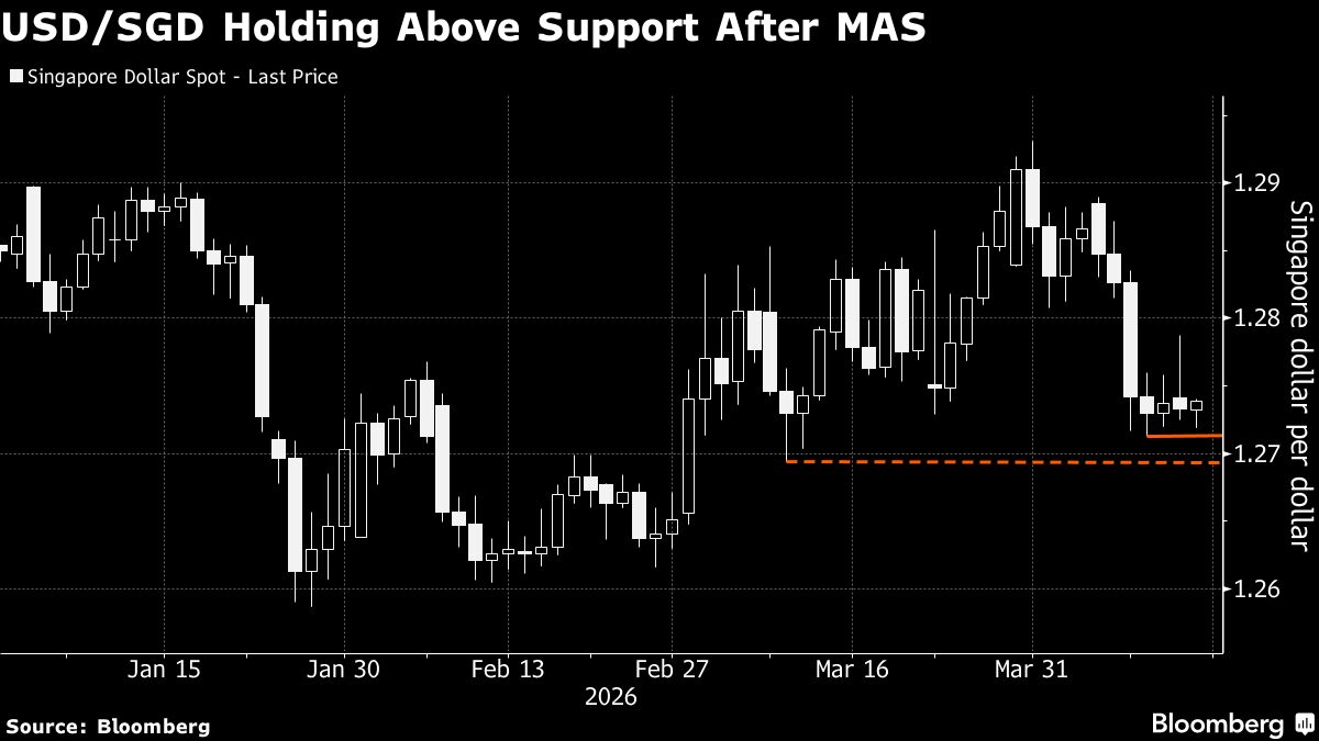 Otoritas Moneter Singapura (MAS), yang menggunakan nilai tukar sebagai alat kebijakan utama alih-alih suku bunga, mengumumkan akan meningkatkan kemiringan (slope) pada pita kebijakan nilai tukarnya. Langkah ini sesuai dengan prediksi 15 dari 18 ekonom dalam survei Bloomberg, sementara lebar dan titik tengah pita kebijakan tetap tidak berubah.