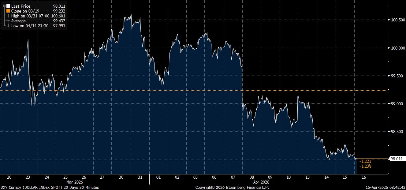 Indeks dolar AS terhadap enam mata uang utama masih melemah dan berada di level 98. Begitu juga dengan harga minyak mentah kembali sedikit melunak di US$94,5 per barel. Pelemahan ini praktis dimanfaatkan oleh mata uang Asia untuk rebound.