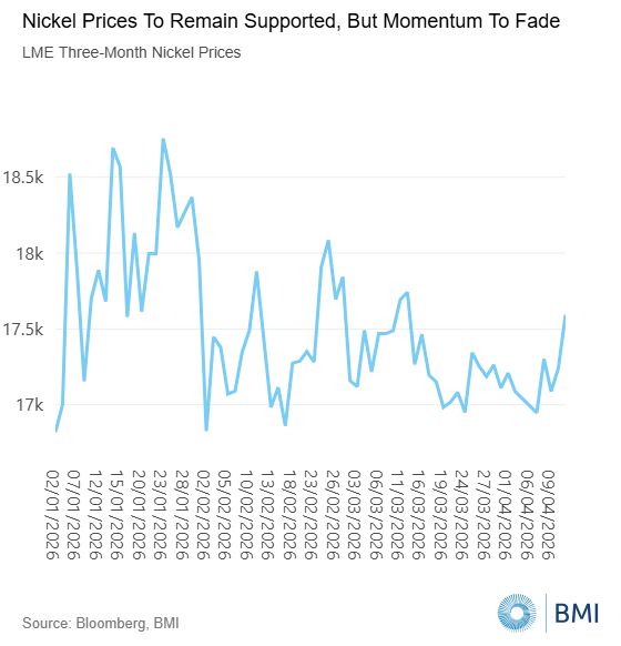 “Kami menaikkan perkiraan harga nikel pada 2026 menjadi USD16.600/ton dari sebelumnya USD15.800/ton, menyusul revisi naik di luar siklus yang dilakukan sebelumnya pada tahun ini, yang mencerminkan kondisi harga yang secara struktural lebih kuat meskipun diperkirakan harga akan terus melemah,” tulis BMI dalam riset terbarunya, Kamis (16/4/2026).