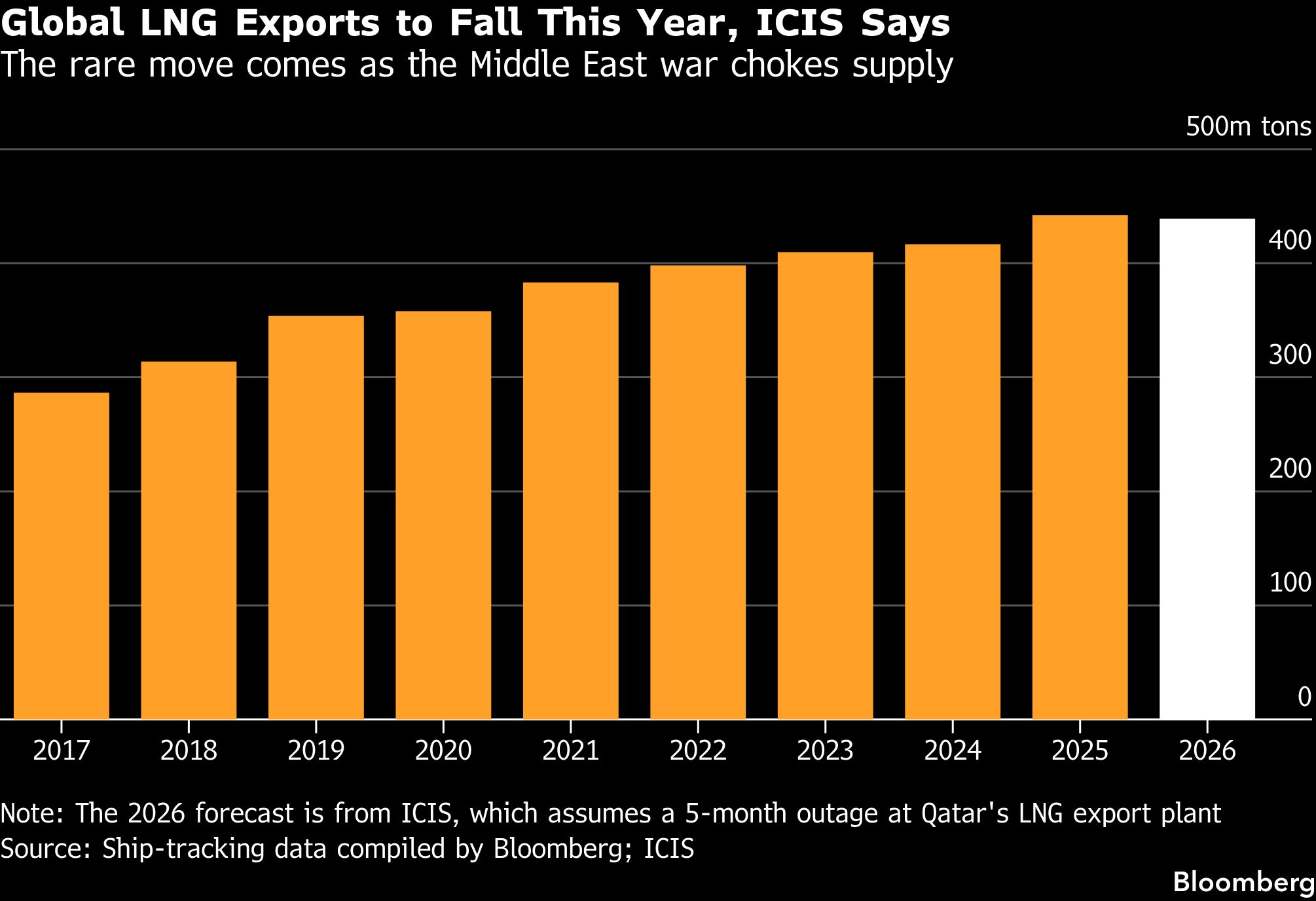 Analis energi ICIS sekarang memperkirakan produksi global akan turun sebesar 0,4% pada 2026, dengan asumsi pemadaman selama lima bulan di pabrik Ras Laffan di Qatar, yang akan menjadi kontraksi pertama dalam setidaknya satu dekade.