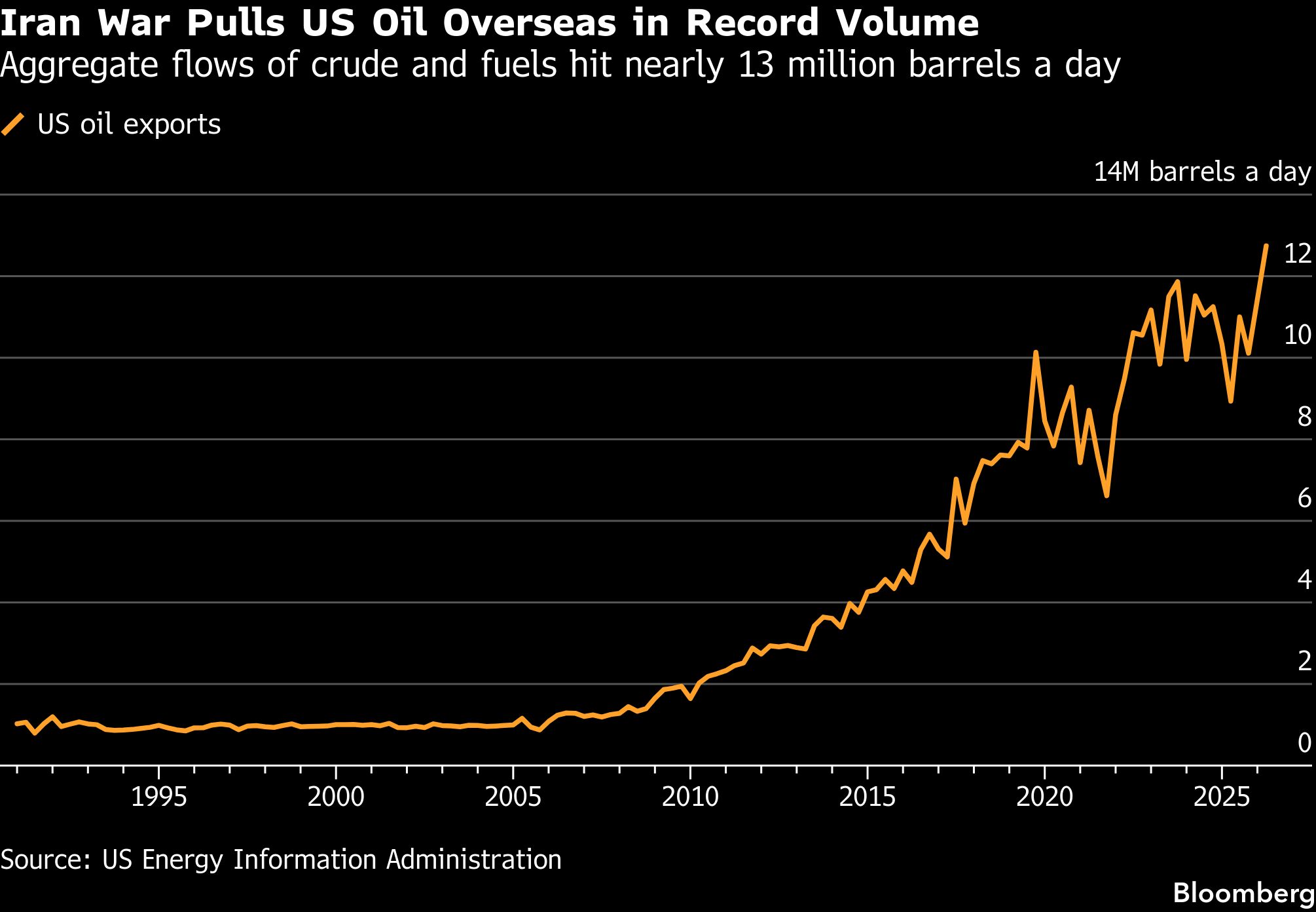 Data pemerintah AS menunjukkan ekspor minyak, termasuk minyak mentah dan produk olahan, mencapai rekor 13 juta barel per hari minggu lalu.
