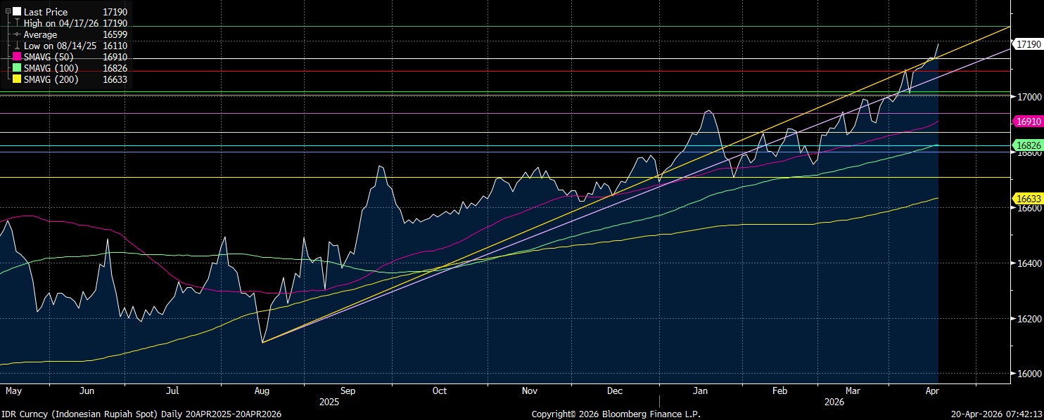 Secara teknikal nilai rupiah berpotensi lanjut melemah pada perdagangan hari ini. Dengan target pelemahan menuju Rp17.200/US$ sampai dengan Rp17.250/US$. Level selanjutnya pelemahan berharap tertahan di ke Rp17.400/US$ dengan tertembusnya support kuat dari posisi sebelumnya.