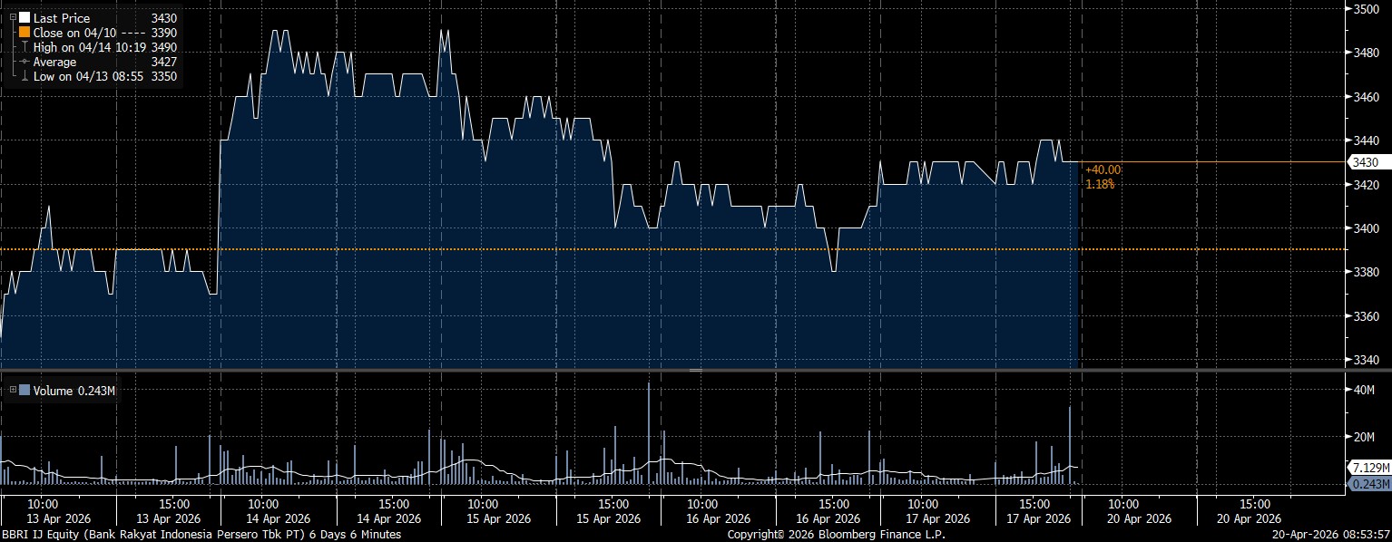 Adapun investor asing mencatat net sell terbesar pada saham PT Bank Rakyat Indonesia Tbk (BBRI) mencapai Rp1,09 triliun. Enggan berhadapan dengan desakan jual, saham BBRI menguat 1,18% menyentuh posisi Rp3.430/saham.