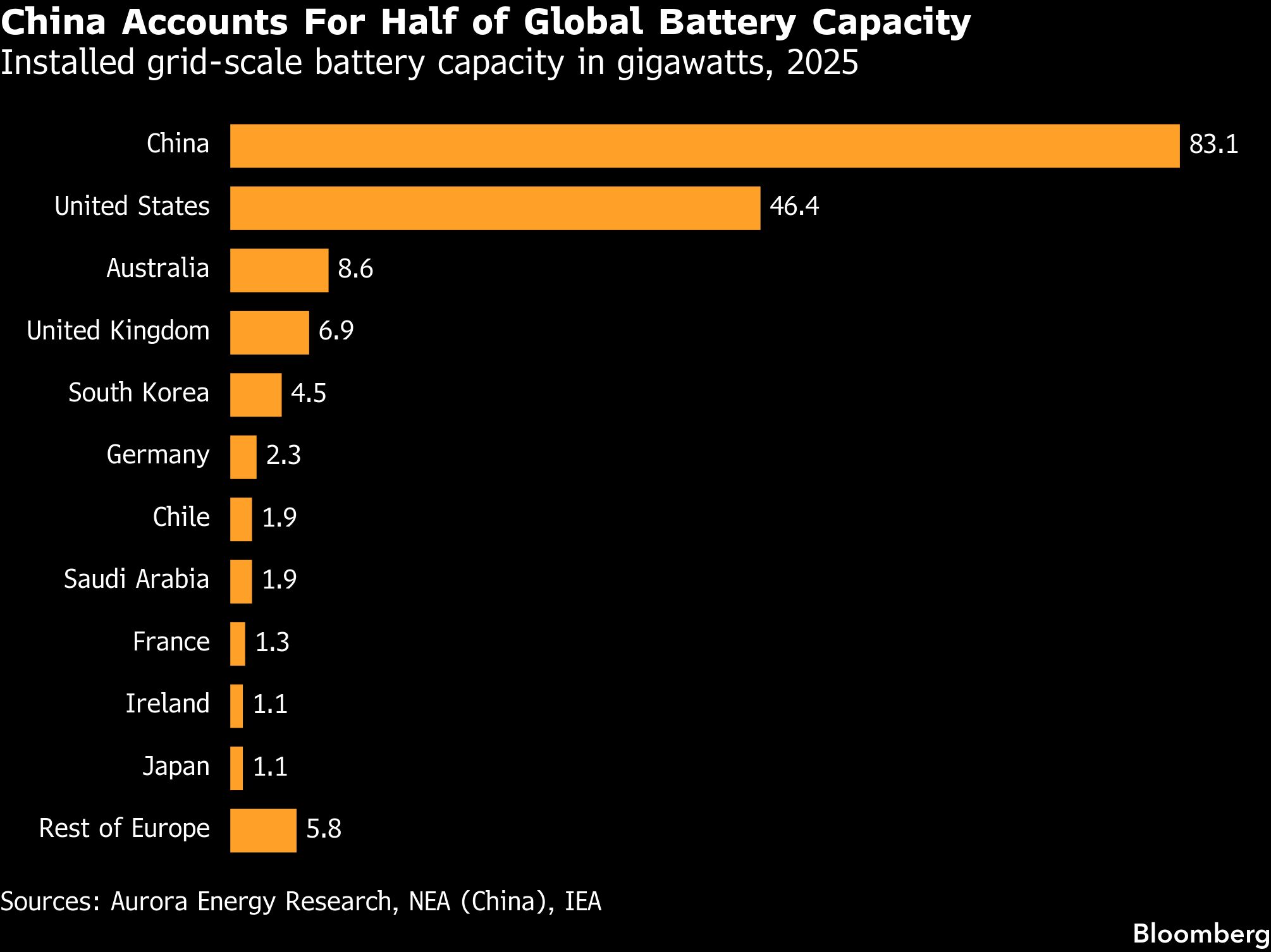 Negara ini sekarang menyumbang sebagian besar kapasitas manufaktur global, serta sekitar setengah dari instalasi baterai skala jaringan yang ada.