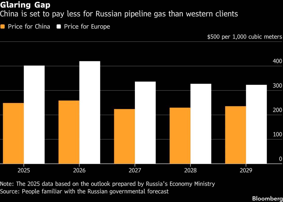 Harga gas Rusia untuk China diperkirakan rata-rata US$258,80 per 1.000 meter kubik tahun ini, lebih dari 38% lebih rendah daripada harga rata-rata yang ditawarkan kepada beberapa pembeli yang tersisa di Eropa, kata dua orang yang mengetahui perkiraan pemerintah.