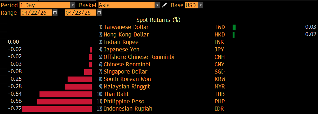 Menyusul rupiah, ada peso Filipina, baht Thailand, ringgit Malaysia, won Korea Selatan, dolar Singapura, yuan China, dan yen Jepang. Hanya dolar Taiwan dan Hong Kong yang mencoba defensif meski perubahannya tipis saja 0,04% dan 0,02%.