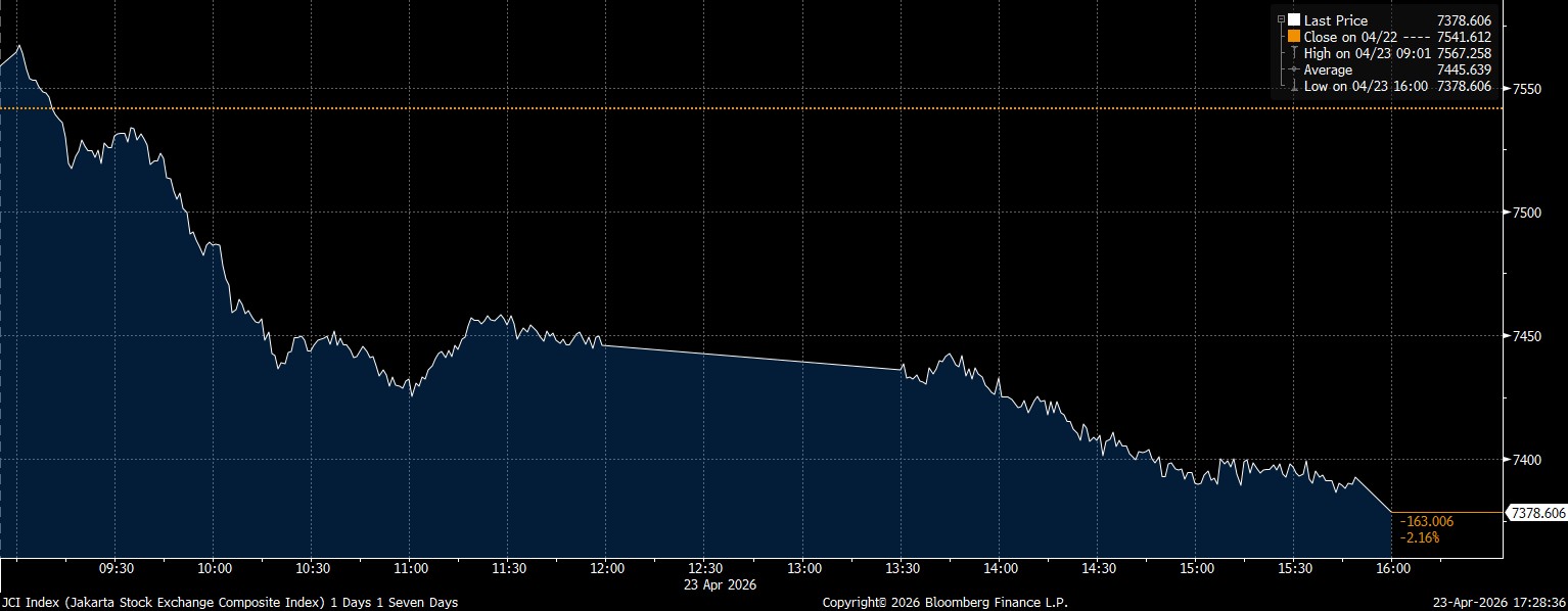Bloomberg Technoz, Jakarta - Indeks Harga Saham Gabungan (IHSG) pada perdagangan kemarin, Kamis (23/4/2026), ditutup melemah 2,16% di posisi 7.378. Lantas bagaimana dengan rekomendasi saham hari ini?