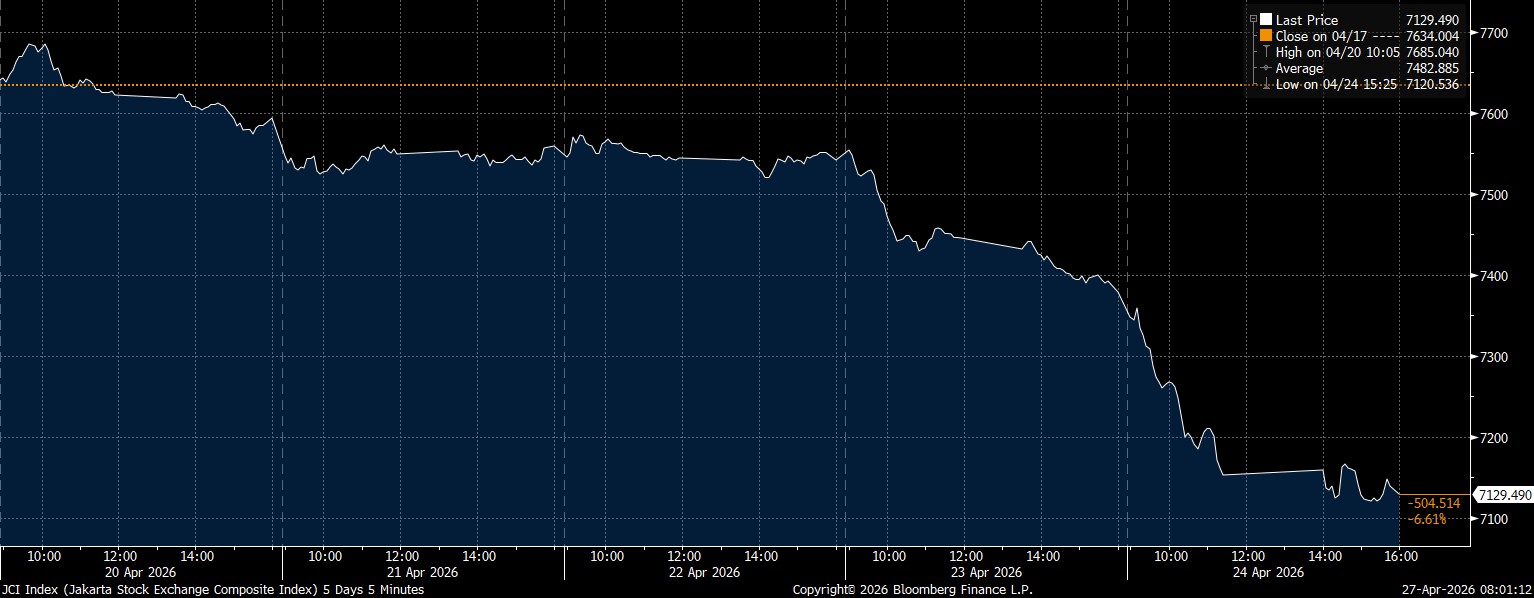 Bloomberg Technoz, Jakarta - Indeks Harga Saham Gabungan (IHSG) ditutup di zona merah pada perdagangan pekan lalu hingga Jumat (24/4/2026), dengan melemah 6,61% di posisi 7.129. Bagaimana dengan rekomendasi saham hari ini?
