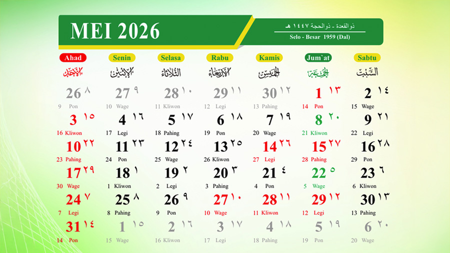 Berikut kalender lengkap Mei 2026 beserta tanggal Hijriah: