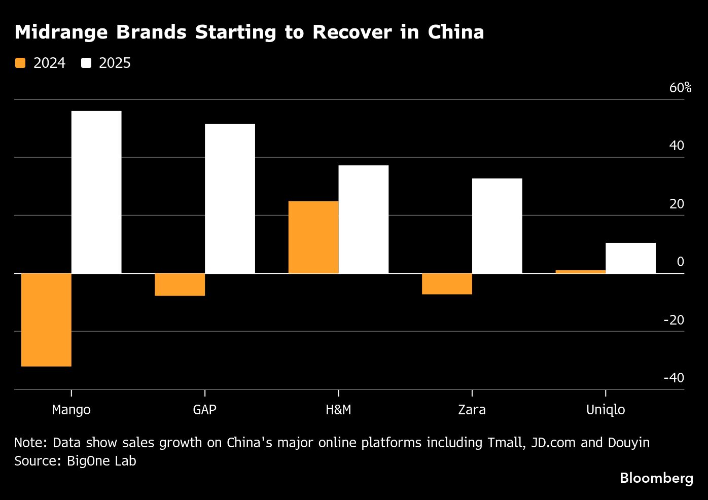 Data penjualan online yang dikumpulkan oleh BigOne Lab dan dianalisis oleh Bloomberg News menunjukkan bahwa Gap, Zara milik Inditex SA, dan Mango tumbuh lebih dari 30% pada 2025 di berbagai saluran e-commerce utama seperti Tmall milik Alibaba Group Holding Ltd., membalikkan penurunan sebelumnya. Gap, yang bisnisnya di China diakuisisi pada 2022 oleh perusahaan e-commerce lokal Baozun Inc., mencatat pertumbuhan pendapatan lebih dari 20% di pasar secara keseluruhan tahun lalu dan kembali mencetak laba kuartalan.