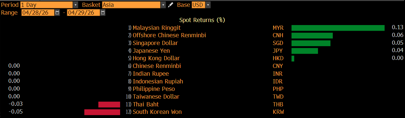 Namun, sentimen itu telah sampai di pasar Asia sebagai sinyal positif. Di pasar yang sudah buka, pergerakan mata uang mulai rebound, meski masih terbatas. Ringgit Malaysia, yuan offshore dolar Singapura, yuan offshore, yen Jepang, dan dolar Hong Kong menguat terbatas. Sebaliknya, won Korea Selatan dan baht Thailand kembali terdepresiasi.