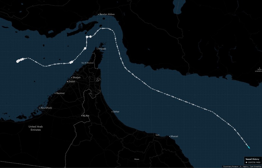 Kapal Idemitsu Maru mulai berlayar pada Senin malam menuju selat dari barat laut Abu Dhabi, tempat kapal tersebut telah berlabuh selama lebih dari seminggu, menurut data pelacakan kapal tanker yang dikumpulkan oleh Bloomberg.