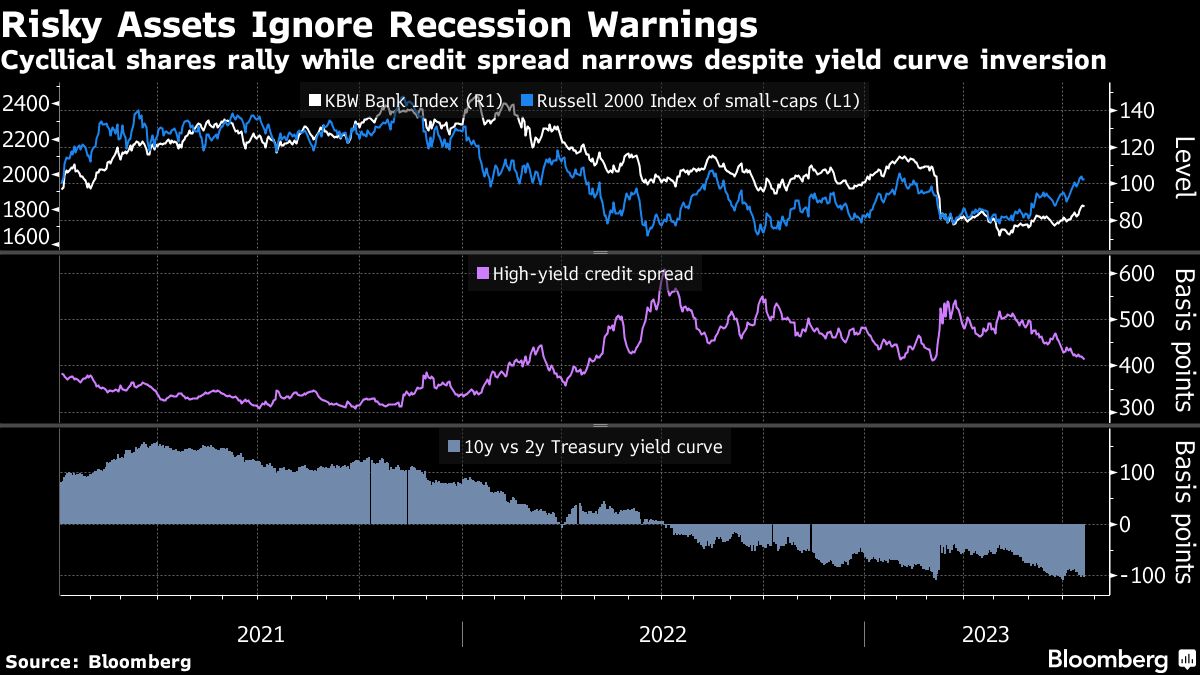 Ekuitas bukan satu-satunya aset yang mengabaikan alarm dari kurva imbal hasil. Minyak telah bangkit kembali setelah kemerosotan di paruh pertama, naik kembali di atas US$75 per barel, sementara spread kredit merosot ke level terendah empat bulan.