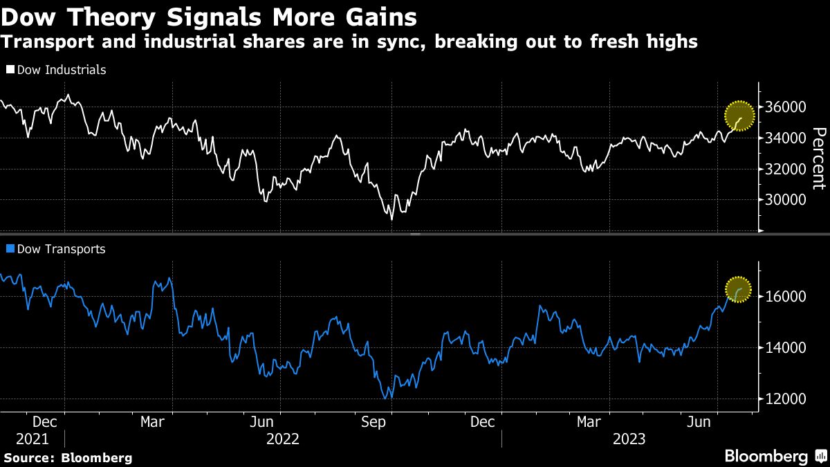 Bukti terbaru datang dari breakout yang sinkron di saham transportasi dan industri. Dow Jones Industrial Average naik selama 10 hari berturut-turut, kemenangan beruntun terpanjang dalam enam tahun, sementara perusahaan penerbangan, kereta api dan truk yang melacak ukuran serupa naik selama empat minggu berturut-turut. Dalam prosesnya, keduanya mencapai level tertinggi sejak awal tahun lalu.