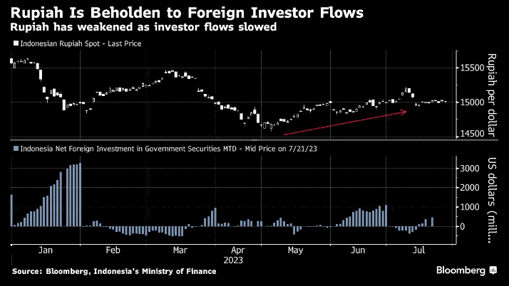 Rupiah sudah melemah sejak Mei ketika The Fed berbalik kembali hawkish dan memangkas selera investasi para pemodal global di pasar surat utang RI. Nilai rupiah sempat terjatuh di level terendah dalam tiga bulan di Rp15.195/US$ pada 10 Juli lalu sebelum akhirnya kini kembali berbalik menguat.