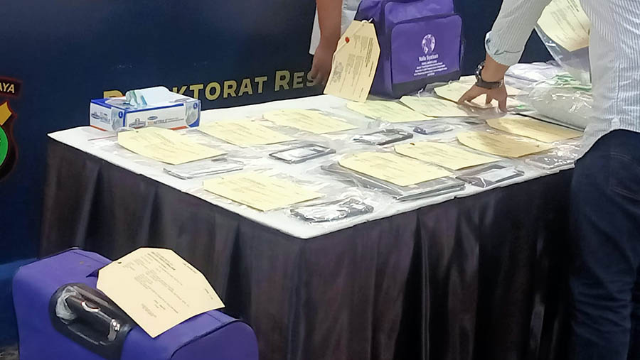 Pada kasus terbaru, polisi telah menyita sejumlah bukti yaitu identitas perusahaan travel umrah, koper dan tas warna ungu untuk jemaah, kartu dan dokumen, kwitansi pembayaran, sejumlah gawai, kartu ATM, dan brosur promosi yang berisi penawaran tiga paket travel umrah dengan harga Rp 21-35 juta per orang.
