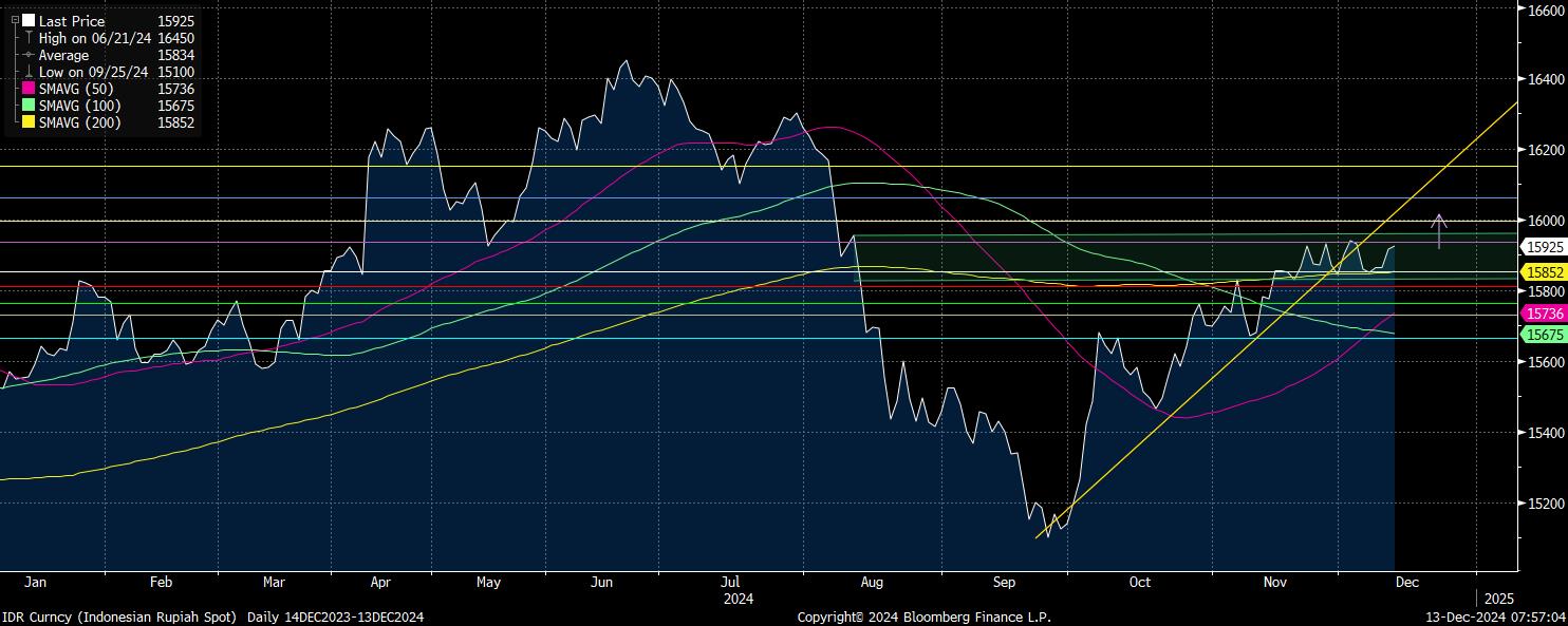 Sementara trendline terdekat pada time frame daily menjadi resistance psikologis potensial pada level Rp15.900/US$ di MA-200. Selama rupiah bertengger di atas Rp15.950/US$ usai tertekan, maka masih ada potensi untuk lanjut melemah hingga Rp16.000/US$.