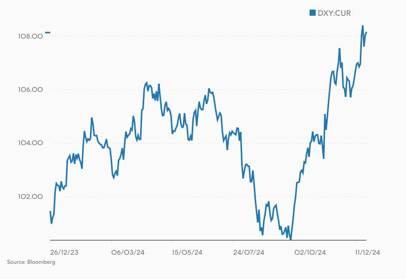 Dolar AS menguat karena pasar memperkirakan pelonggaran moneter oleh bank sentral Federal Reserve mungkin tidak akan terlalu agresif pada 2025. Tahun ini. Gubernur Jerome ‘Jay’ Powell dan kolega menurunkan suku bunga acuan 100 basis poin (bps).