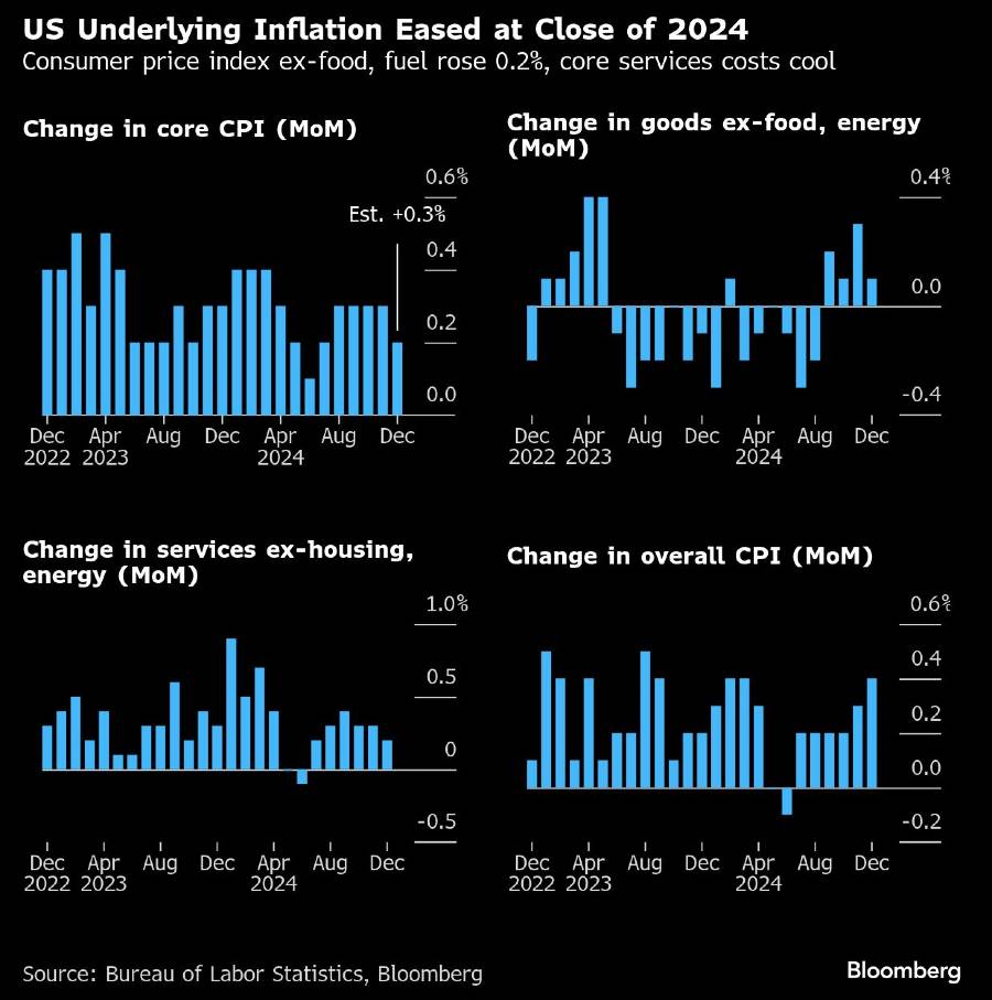 Harga konsumen naik pada Desember, lebih kecil dari perkiraan, tanda baik yang membantu menghentikan aksi jual besar-besaran di pasar obligasi dan menghidupkan kembali spekulasi bahwa Federal Reserve (The Fed) akan memangkas suku bunga lebih cepat dari yang diperkirakan sebelumnya.
