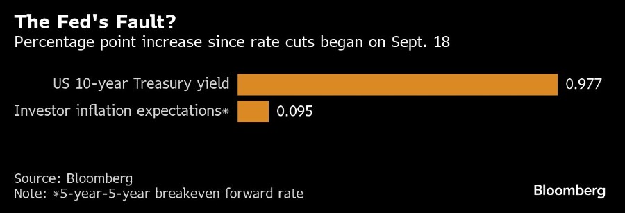 Saat para pejabat The Fed berkumpul dalam dua minggu ke depan, mereka mungkin merenungkan tren yang membingungkan di pasar: Sejak September, ketika mereka menurunkan suku bunga jangka pendek sebesar satu poin persentase penuh, imbal hasil obligasi pemerintah jangka panjang bergerak dalam jumlah yang kira-kira sama — tetapi dalam arah yang berlawanan.