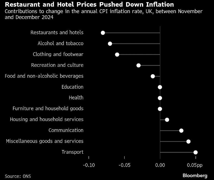Inflasi Inggris secara tak terduga turun untuk pertama kalinya dalam tiga bulan pada Desember, mendorong para trader meningkatkan taruhan pada penurunan suku bunga Bank of England (BOE) tahun ini.