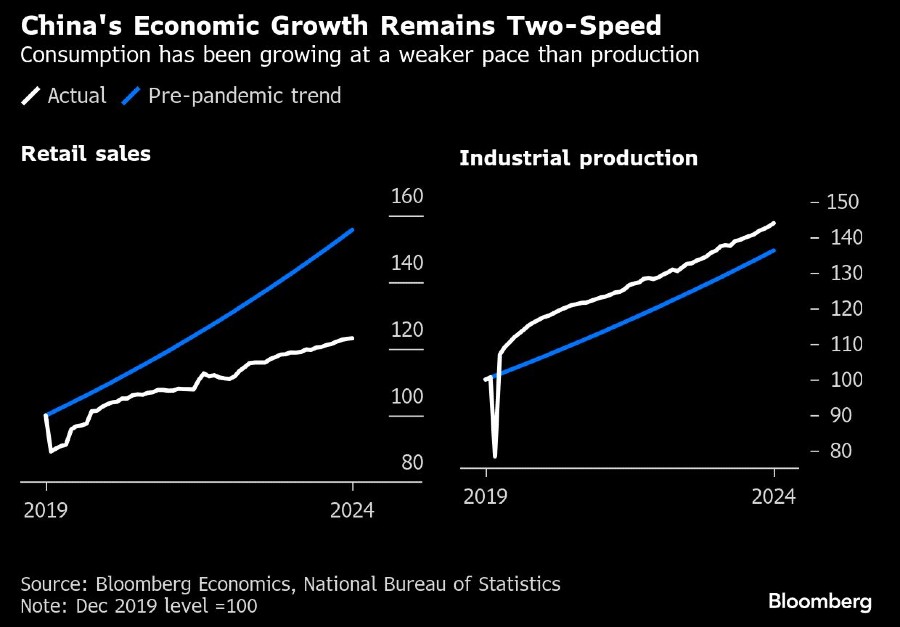 Pemerintah Presiden Xi Jinping mencapai target pertumbuhan 5% tahun lalu, pencapaian yang sudah diduga banyak orang dan tidak terlalu mengejutkan. Data dari Biro Statistik Nasional menunjukkan ekonomi dua jalur China terus ditopang oleh perdagangan, sementara belanja konsumen tetap lemah.