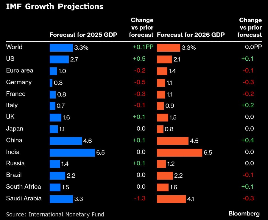 Dana Moneter Internasional (IMF) meningkatkan proyeksi pertumbuhan global untuk tahun ini, didorong oleh permintaan AS yang lebih kuat dari perkiraan dan melambatnya inflasi di seluruh dunia, sehingga memungkinkan bank sentral untuk terus memangkas suku bunga.