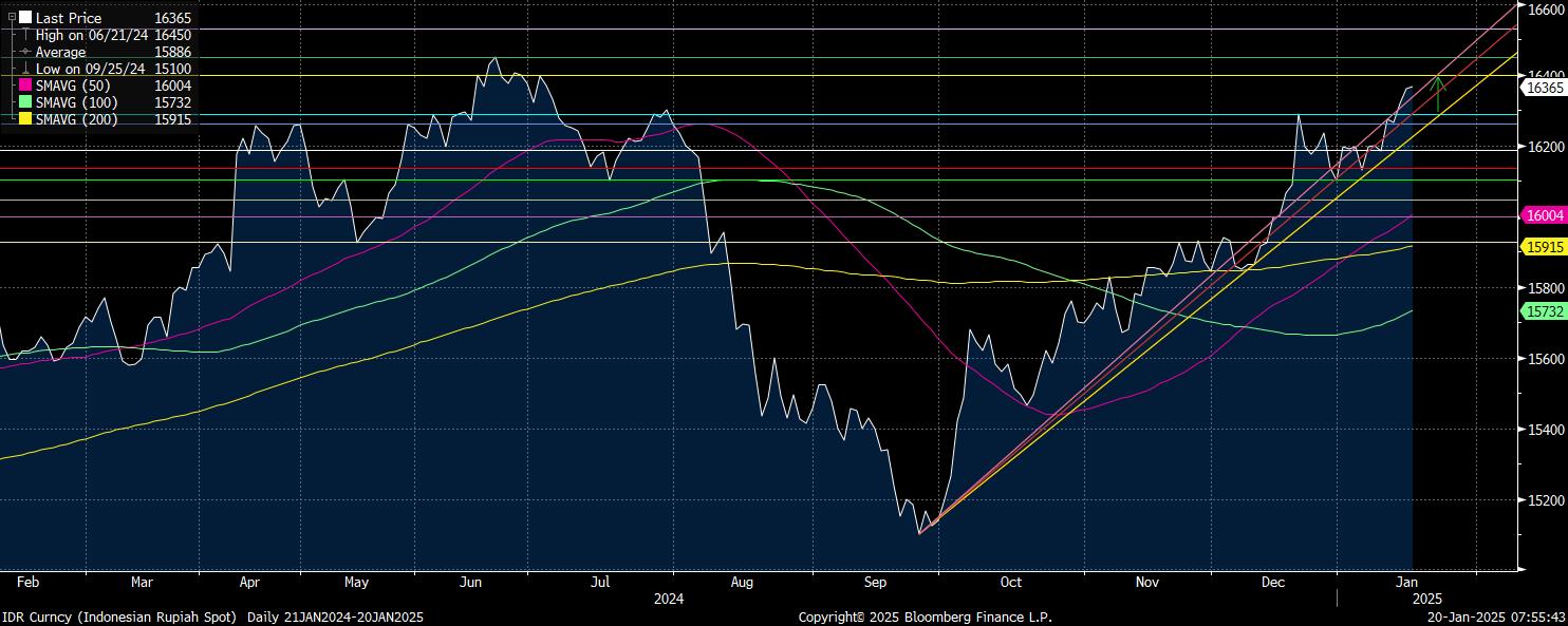 Secara teknikal nilai rupiah masih akan berpotensi melemah menuju area Rp16.380/US$ hingga Rp16.400/US$, dengan mencermati support terkuat rupiah pada Rp16.450/US$.