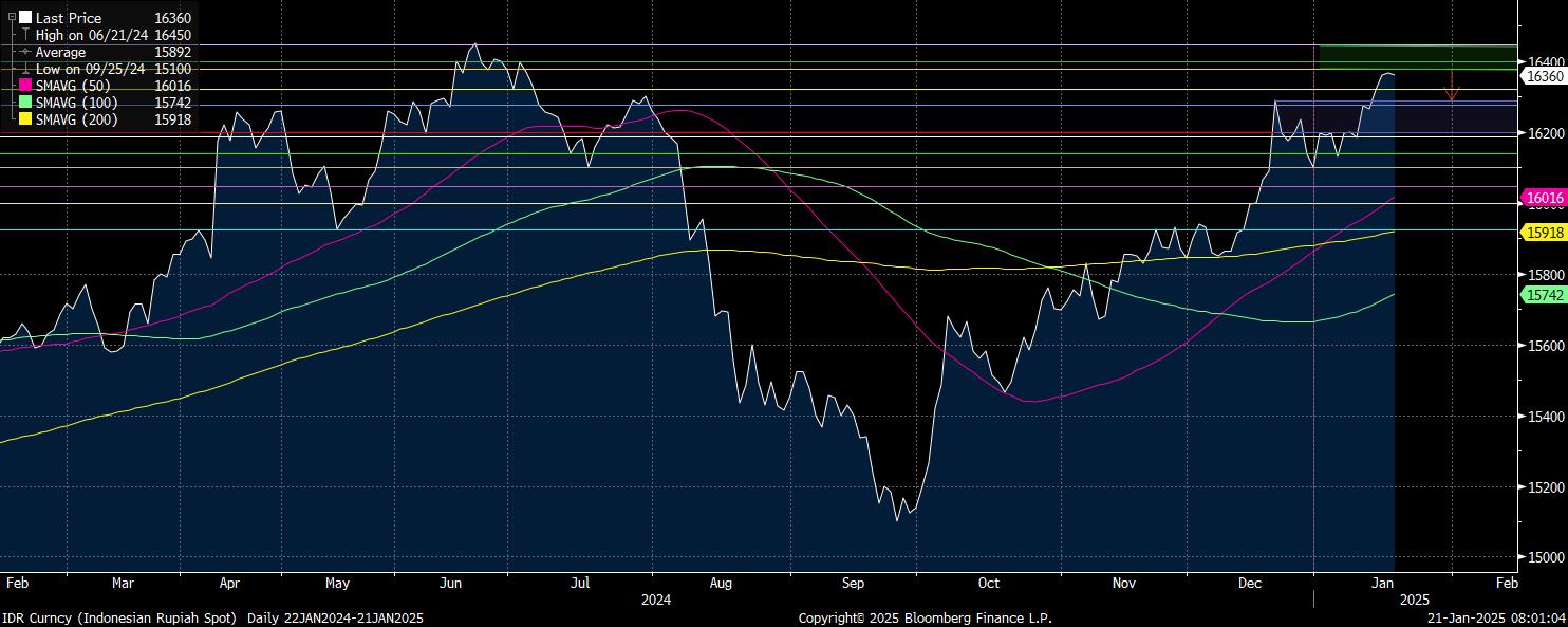 Rupiah memiliki level resistance terdekat pada level Rp16.340/US$, resistance potensial selanjutnya menuju Rp16.300/US$, dan juga kembali mencapai Rp16.250/US$ sebagai level paling optimis penguatan rupiah dalam tren jangka menengah, atau dalam sepekan, dengan time frame daily.