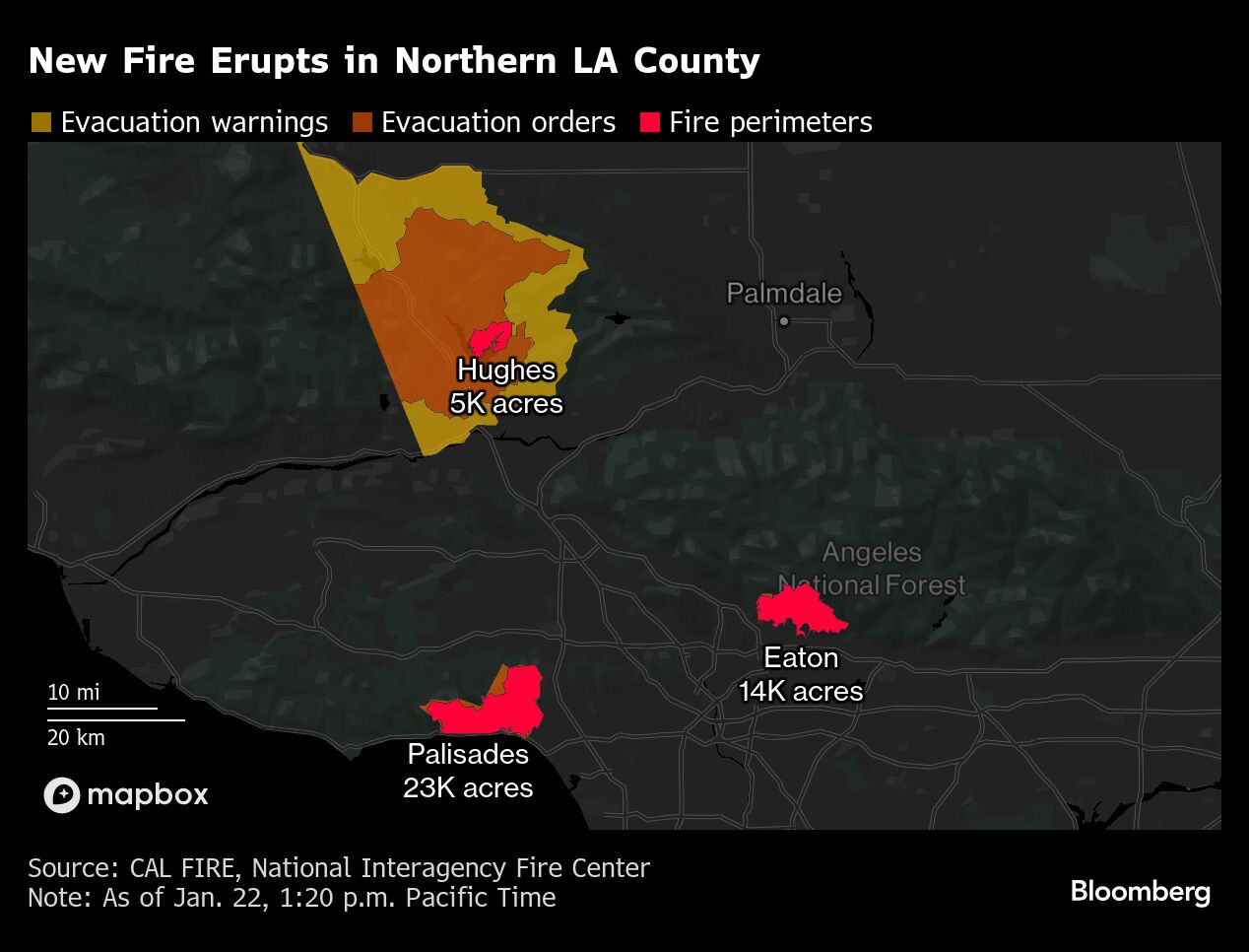 David Acuna, Kepala Batalyon Cal Fire, mengatakan kebakaran Hughes “terutama membakar semak dan rumput” di area yang kering. Cal Fire telah menyiapkan kru dan peralatan di area Castaic, yang “langsung digunakan,” katanya, namun kebakaran ini tetap berkembang dengan cepat seiring angin mulai bertambah kencang.