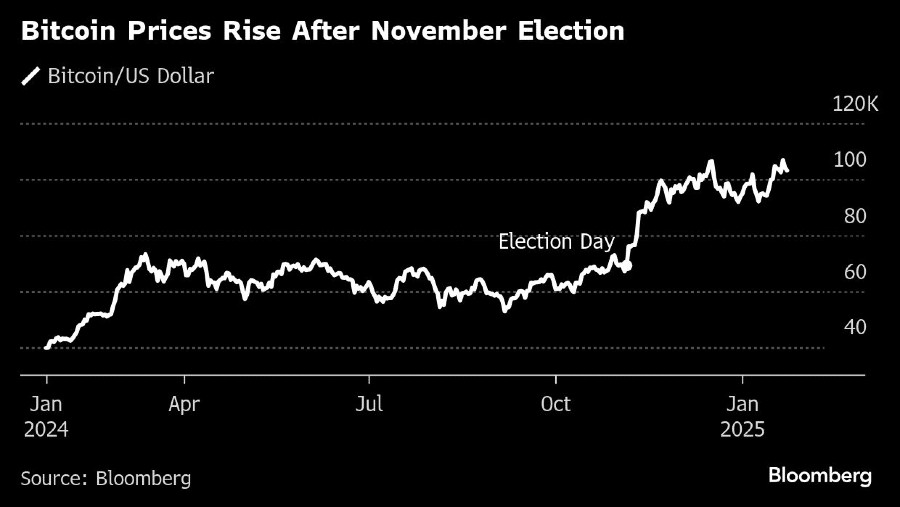 Bitcoin, token terbesar berdasarkan kapitalisasi pasar, mengalami kenaikan harga lebih dari 50% sejak pemilu hingga pertengahan Januari, dan mata uang kripto lainnya juga melonjak.