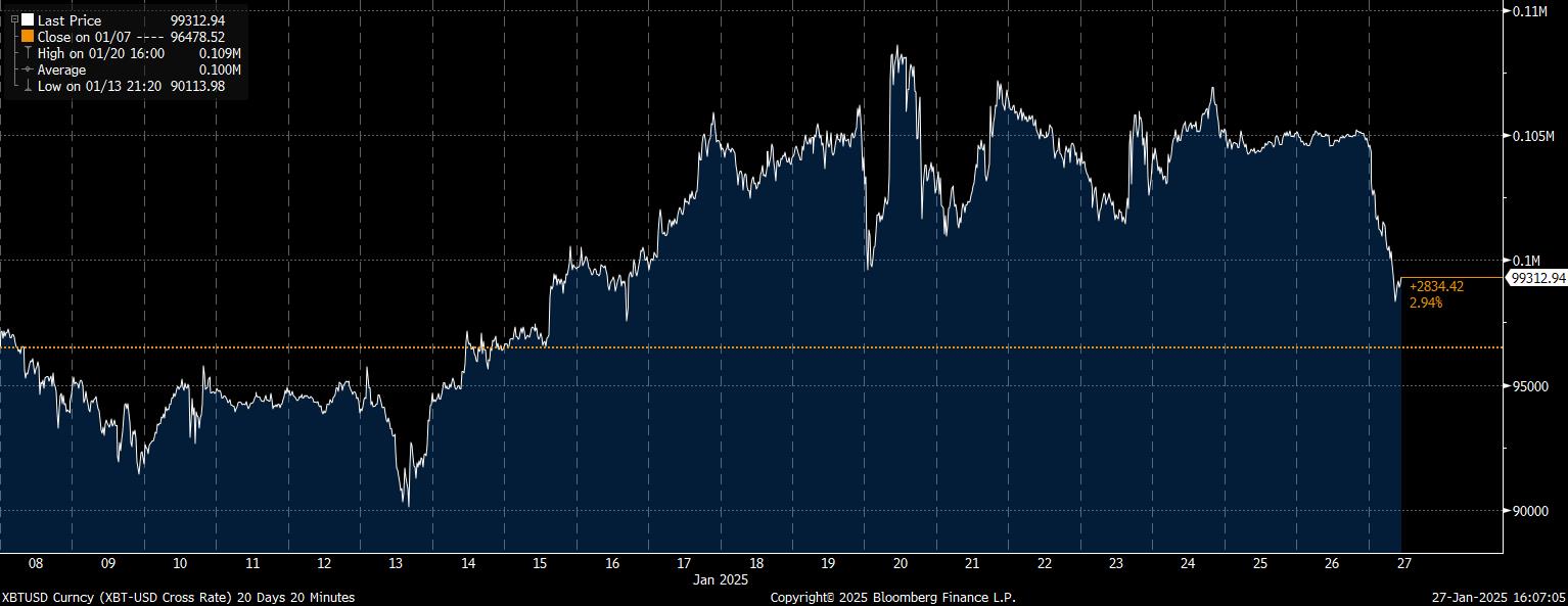 Saat ini laju Bitcoin ada pada level US$99.312 (Rp1,6 miliar) atau mengalami kejatuhan harga mencapai 5,38% hanya dalam 24 jam, dan terjungkal 8,81% dalam sepekan, atau 7 hari perdagangan.