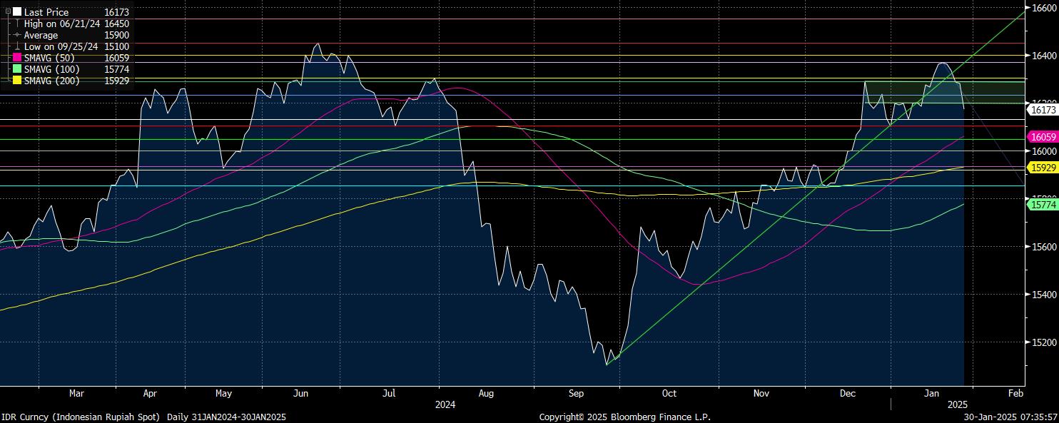 Apabila kembali break kedua support tersebut, rupiah berpotensi melemah makin jauh menuju level Rp16.250/US$ sebagai support terkuat.