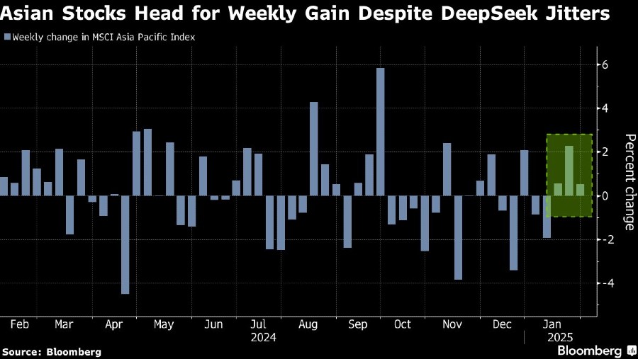 Terlepas dari aksi jual saham teknologi minggu ini, bursa Asia masih ada di jalur kenaikan bulanan pertama dalam empat bulan terakhir karena kekhawatiran atas tarif Presiden Donald Trump mereda setelah ia menunda pemberlakuan pungutan terhadap China sejauh ini. Namun, rotasi keluar dari perdagangan AI yang populer di kawasan ini terus membebani prospek.