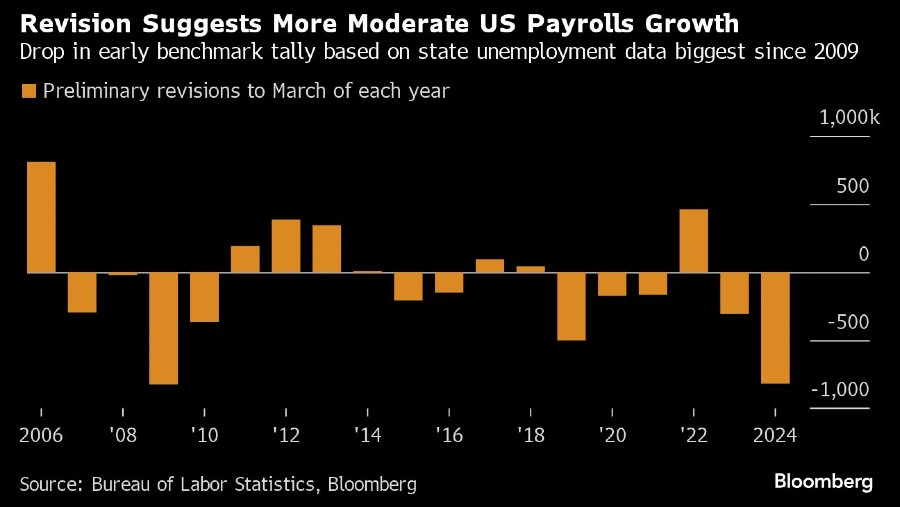 Selain data ketenagakerjaan malam ini, Wall Street akan mencermati revisi pertumbuhan tenaga kerja. Para ekonom memprediksi bahwa hal itu akan substansial, tetapi mungkin tidak seburuk yang diperkirakan sebelumnya.