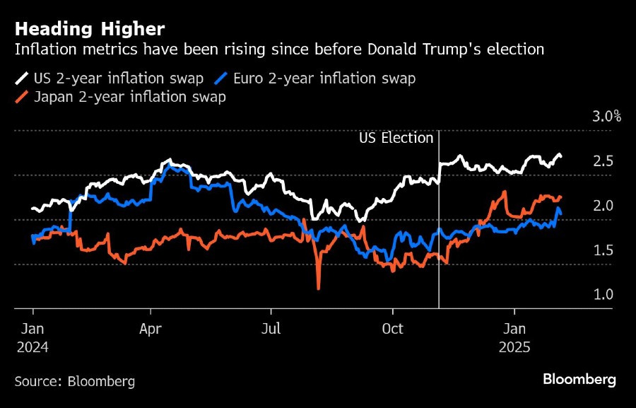 Hal ini sejalan dengan pasar. Ekspektasi inflasi AS, Eropa, dan Jepang telah melonjak secara signifikan sejak Trump menjadi favorit untuk memenangkan kursi kepresidenan, dengan semua diperdagangkan di atas 2% minggu ini.