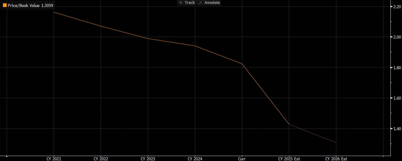 Sementara itu, PBV adalah rasio antara kapitalisasi pasar dengan total nilai buku ekuitas. Rasio di bawah 1 kali artinya kapitalisasi pasar lebih murah dibandingkan dengan total ekuitas, sedangkan rasio di atas 1 kali artinya terbilang lebih mahal.