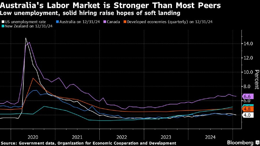 Dalam prakiraan terbarunya, RBA menurunkan angka tertinggi tingkat pengangguran menjadi 4,2% dari 4,5%. Para ekonom memprediksi data pada Kamis (20/2/2025) akan menunjukkan pengangguran naik tipis menjadi 4,1% pada Januari dari 4%.
