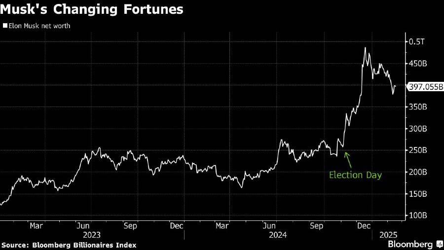 Kekayaan bersih Musk — US$397,1 miliar pada penutupan Selasa — naik lebih dari 50% sejak Pemilu, menurut Bloomberg Billionaires Index. Jika semua putaran pendanaan ditutup sesuai rencana, kekayaannya akan mencapai lebih dari US$420 miliar.
