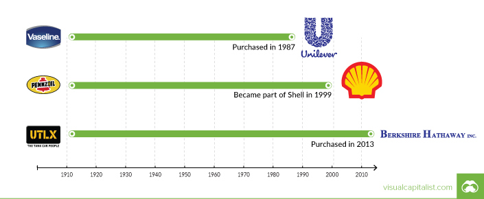 - Standard Oil of California: Mengakuisisi Standard Oil of Kentucky, Texaco, dan Unocal, dan sekarang menjadi Chevron.