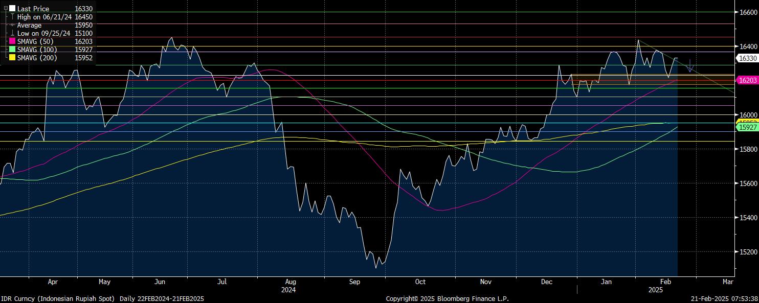 Sementara itu, rupiah memiliki level support psikologis di Rp16.350/US$. Apabila level ini berhasil tembus, maka mengkonfirmasi laju support selanjutnya pada level Rp16.400/US$ yang makin menjauhi MA-50 dan MA-100 saat ini.