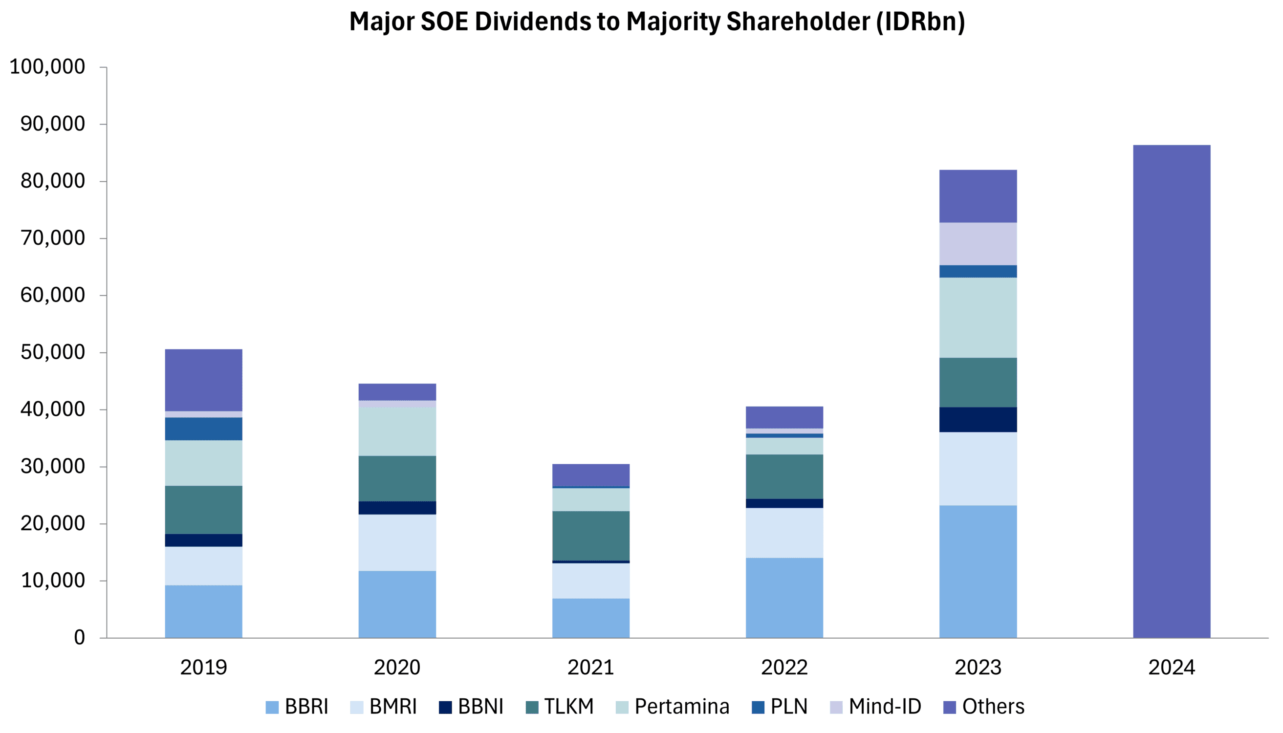 Pada 2023, 7 BUMN itu menyumbang dividen sekitar Rp 73 triliun dan pada 2024 diperkirakan bisa mencapai Rp 76 triliun. Jumlah itu adalah 90% dari total setoran dividen BUMN ke APBN.