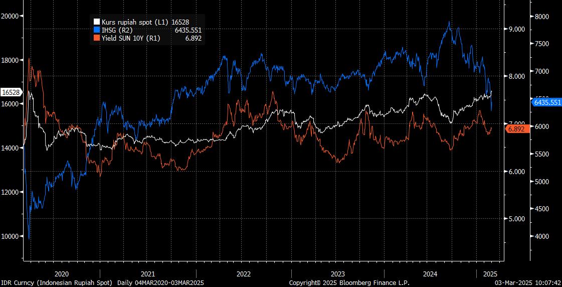 Berikut ini rangkuman beberapa sentimen yang melingkupi pasar pada perdagangan Senin, pekan pertama Maret 2025: