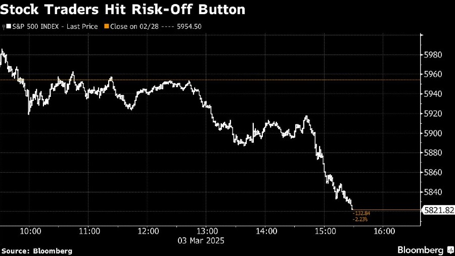 Indeks S&P 500 turun 1,8%. Nasdaq 100 melemah 2,2%. Dow Jones Industrial Average melandai 1,5%. Indeks Magnificent Seven megacaps merosot 3,1%. Sekelompok saham AS UBS, yang terdampak negatif oleh tarif, anjlok 2,9%.