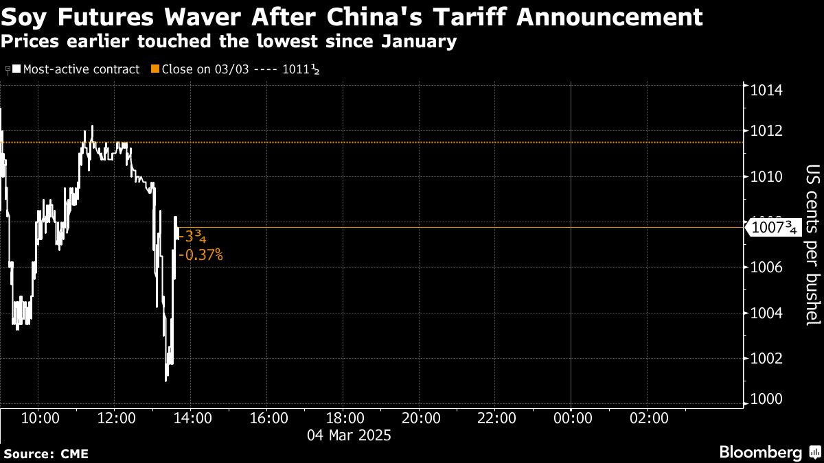 Pemerintah China mengumumkan pada Selasa bahwa tarif tambahan sebesar 10% akan dikenakan pada impor kedelai dari AS mulai 10 Maret. Selain itu, sorgum, daging babi, dan daging sapi juga akan dikenakan tarif tambahan sebesar 10%, sementara ayam, gandum, jagung, dan kapas dari AS akan dikenai tarif tambahan sebesar 15%, menurut pernyataan resmi Kementerian Keuangan China.