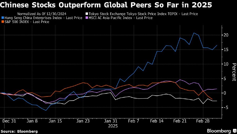 Bloomberg, Pasar saham mengalami reli setelah Menteri Perdagangan AS Howard Lutnick mengatakan pemerintahan Donald Trump mungkin akan membatalkan beberapa tarif. Bursa saham Hong Kong memimpin kenaikan karena target pertumbuhan ekonomi China memicu spekulasi akan ada lebih banyak stimulus.